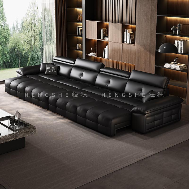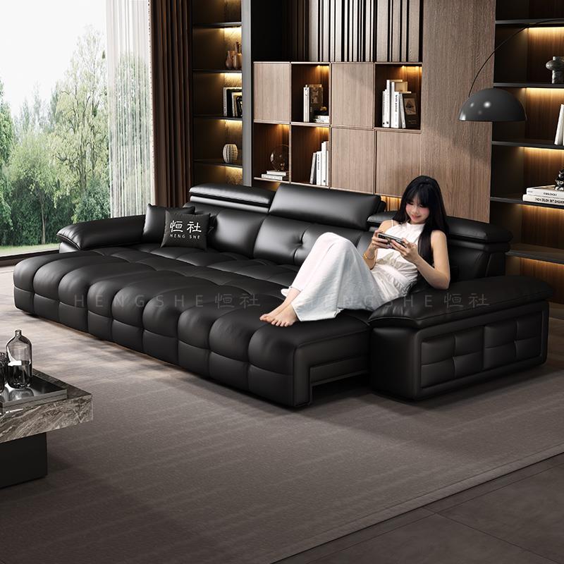 恒社极简零靠墙电动真皮沙发两用客厅智能折叠伸缩多功能头层牛皮