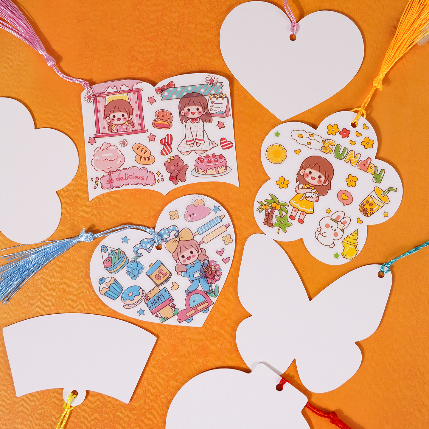 支持定制异形空白书签diy免打孔加厚硬卡片中秋节手工材料绘画带流苏幼儿园小学生学校活动手工课自制书签