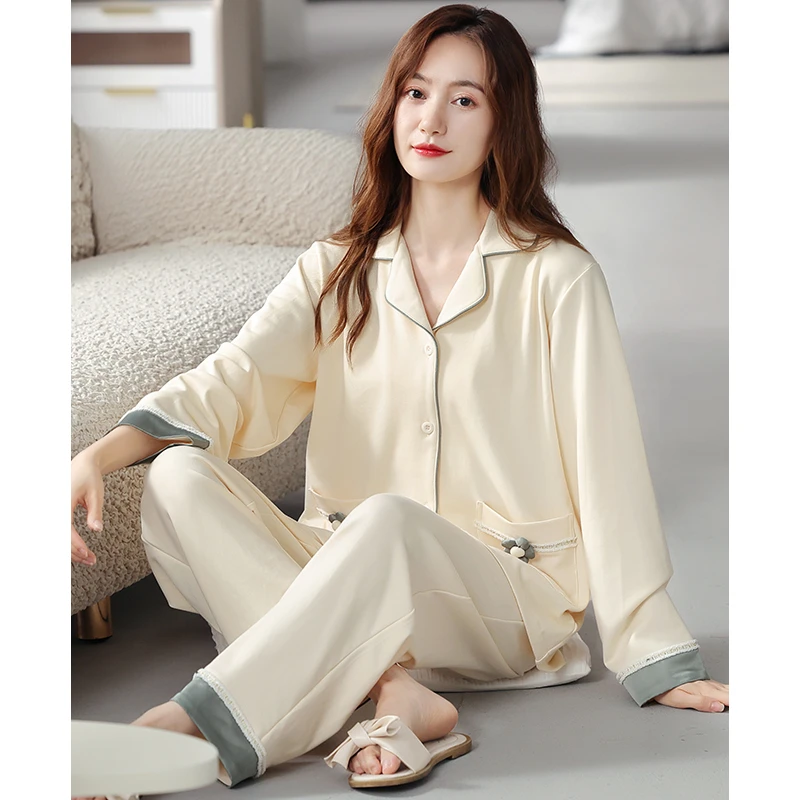 秋季 带胸垫睡衣女春秋长袖 2025年新款 套装 高级感家居服 简约大码