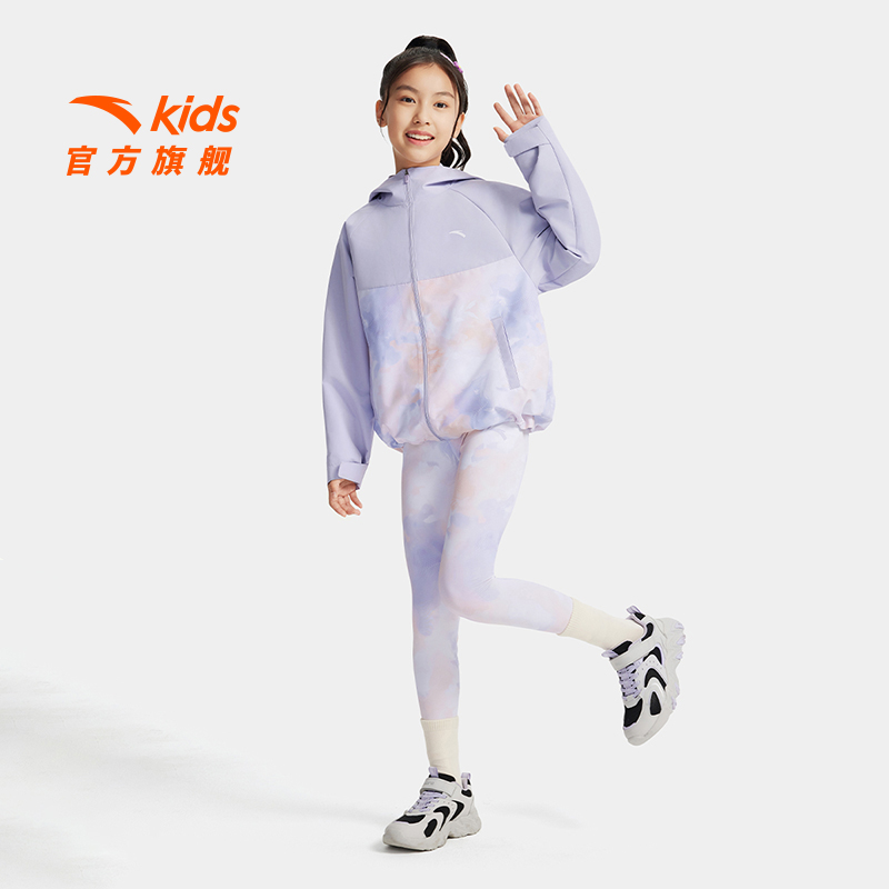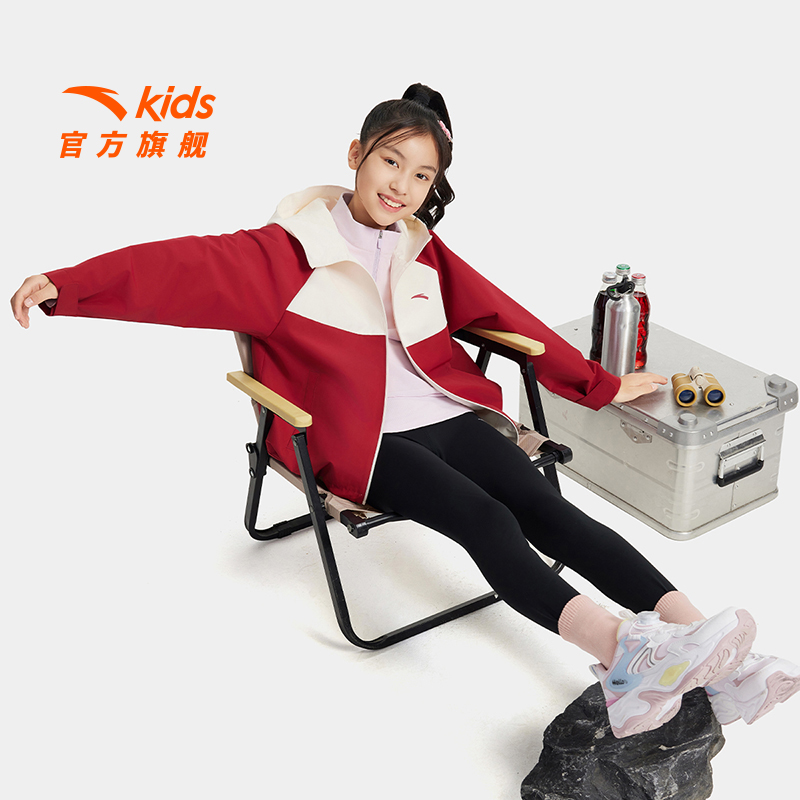 女孩洋气防风防雨户外上衣打底裤 安踏儿童外套裤 新款 25秋装 子套装