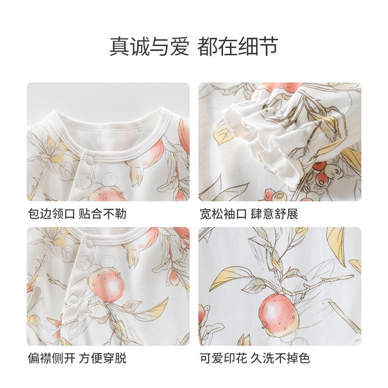 欢喜小熊宝宝纯棉连体衣婴儿秋天抗菌衣服女宝春秋季 无骨哈衣爬服