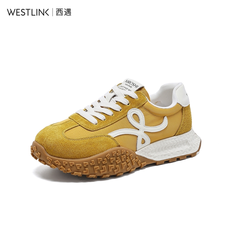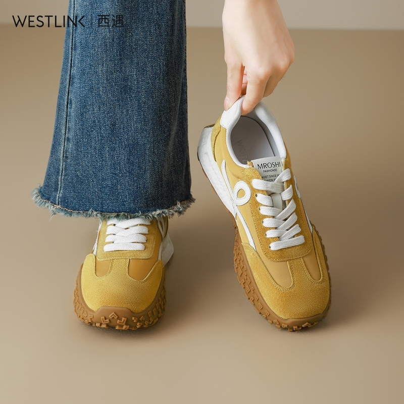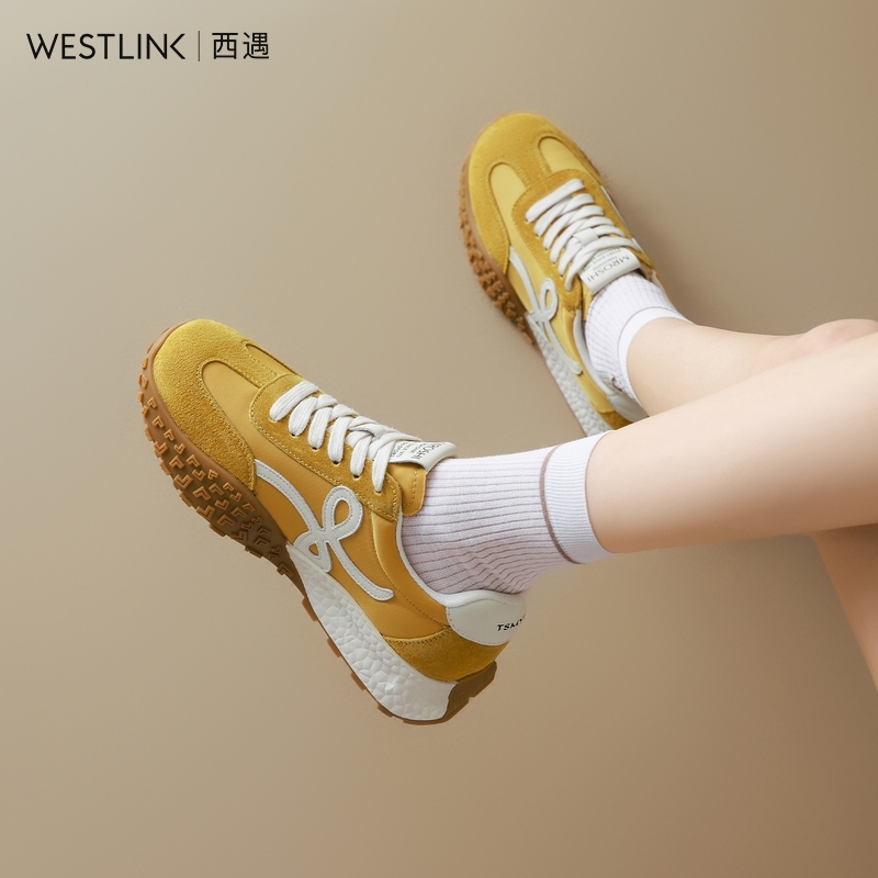 女2025新款 子运动休闲板鞋 秋季 百搭阿甘鞋 爆款 拉夏贝尔黄色德训鞋