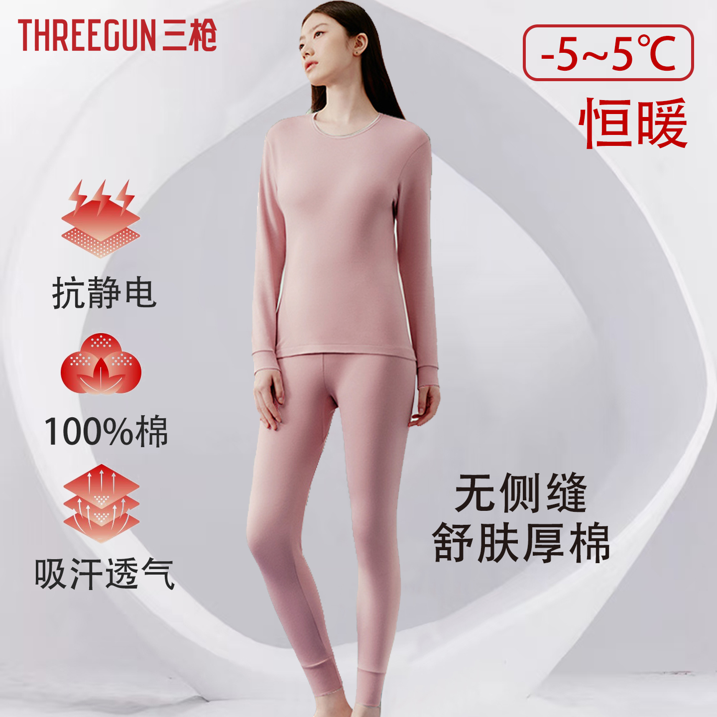 保暖内衣套装 顶瓜瓜秋衣秋裤 高弹男款 棉毛衫 女士纯棉10A抗菌薄款