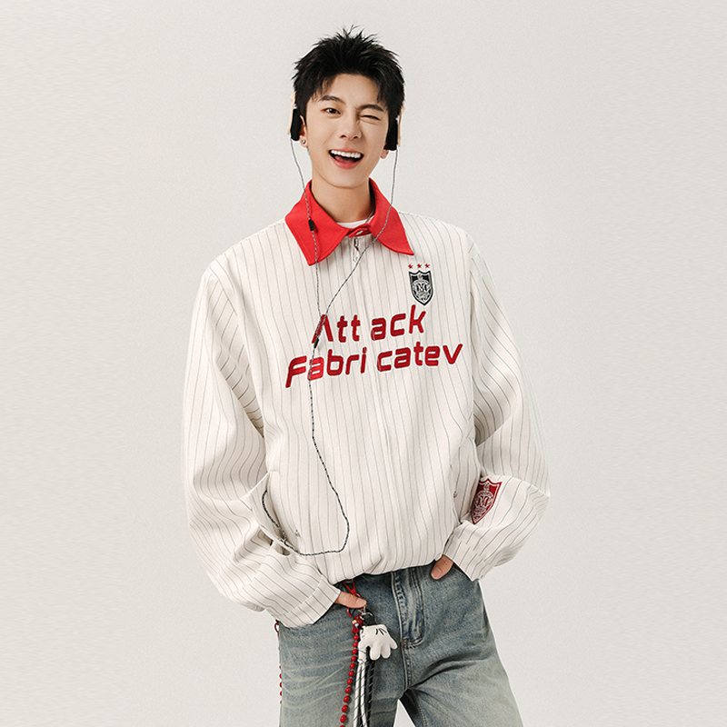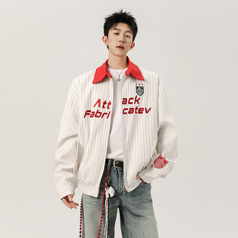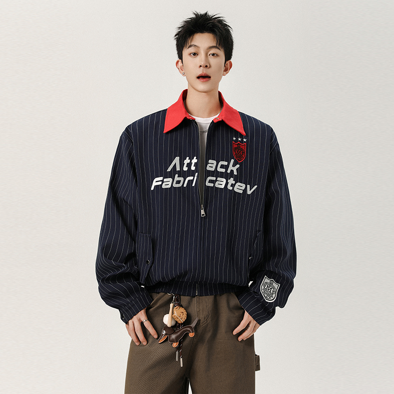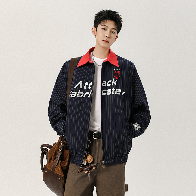 新款 2025春秋季 潮牌宽松休闲青少年正肩外套 字母条纹夹克男款 美式