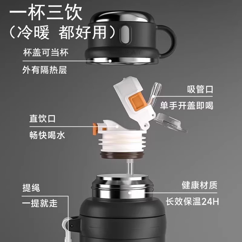 水杯学生上学专用2025新款 不锈钢保温杯男女生防摔大容量双饮杯子