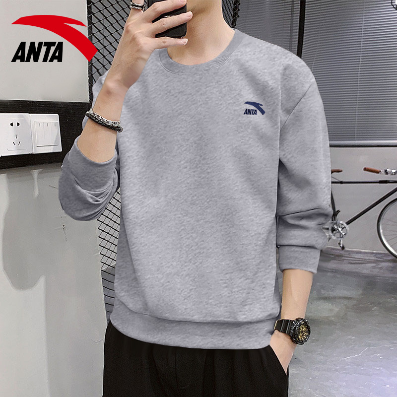 青少年官方旗舰运动长袖 安踏卫衣男士 圆领灰色套头衫 新款 T恤 秋季
