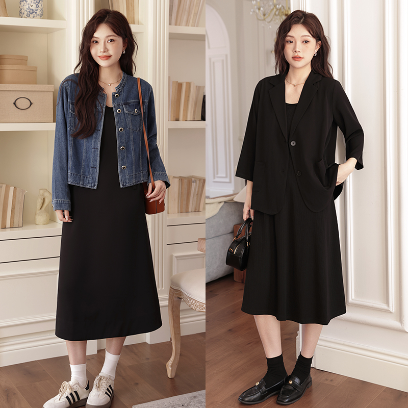 百搭显瘦遮肚子收腰小黑裙 胖MM连衣裙吊带背心款 秋冬新款 显瘦大码