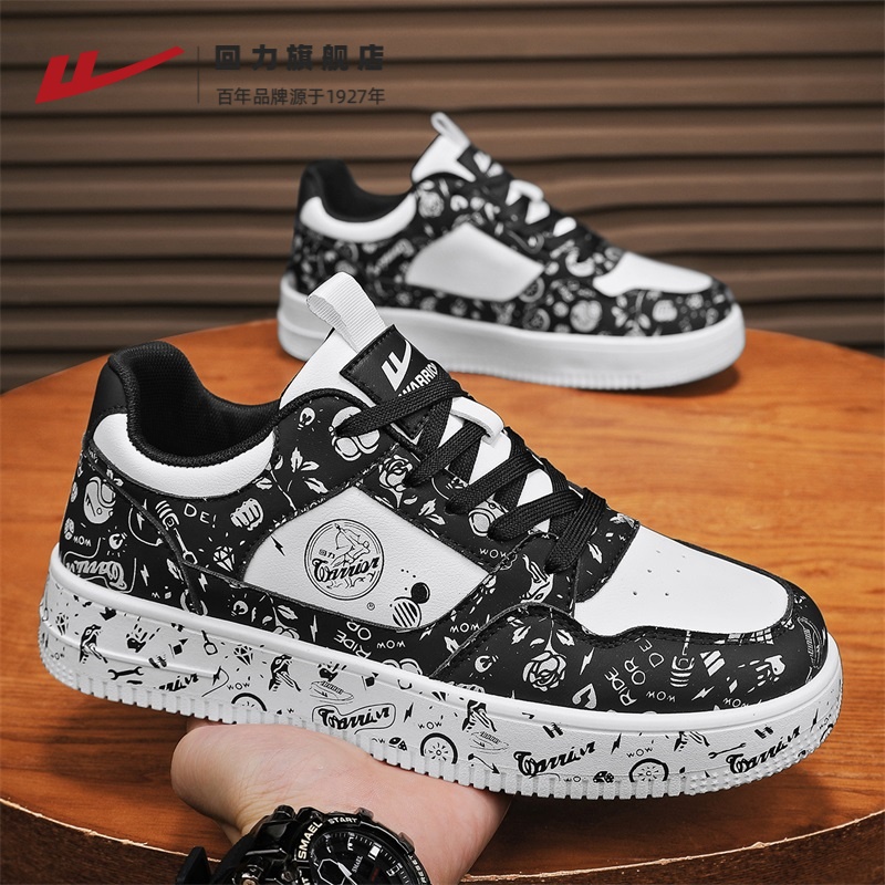 板鞋 皮面涂鸦中学生国潮鞋 韩版 秋季 潮流休闲运动2025新款 回力男鞋
