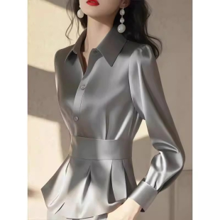 独特别致上衣气质轻奢高级感超好看水光缎面衬衫 法式 新款 2025春季