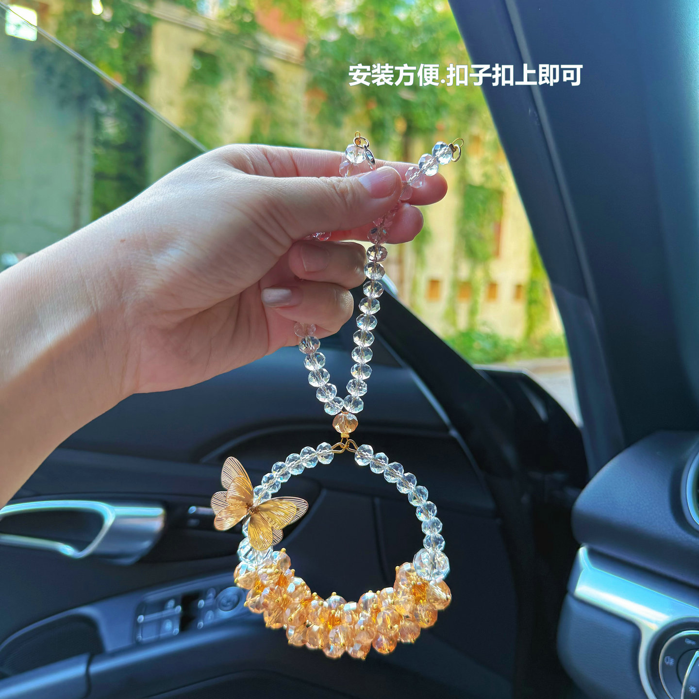 原创汽车挂件高级感女士车载后视镜水晶吊坠轻奢香槟金车内装 饰品
