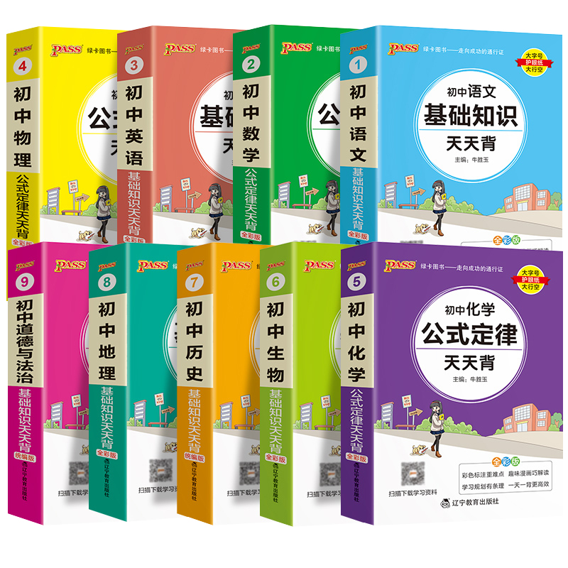 pass绿卡图书初中天天背语文数学物理化学生物地理政治历史小四门基础知识点汇总英语词汇语法古诗文文言文必背公式 定律手册口袋书