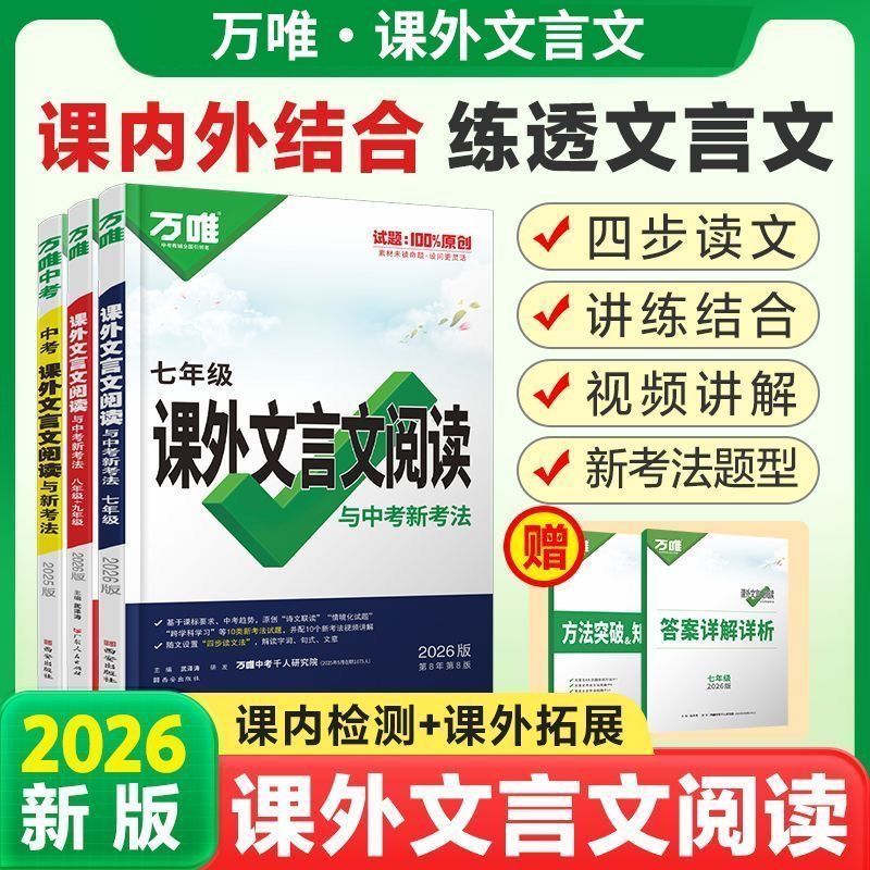 2026新版 万唯文言文课外阅读与中考新考法七八九年级初中一本通初一初二试题研究初三语文教辅资料训练专项人教
