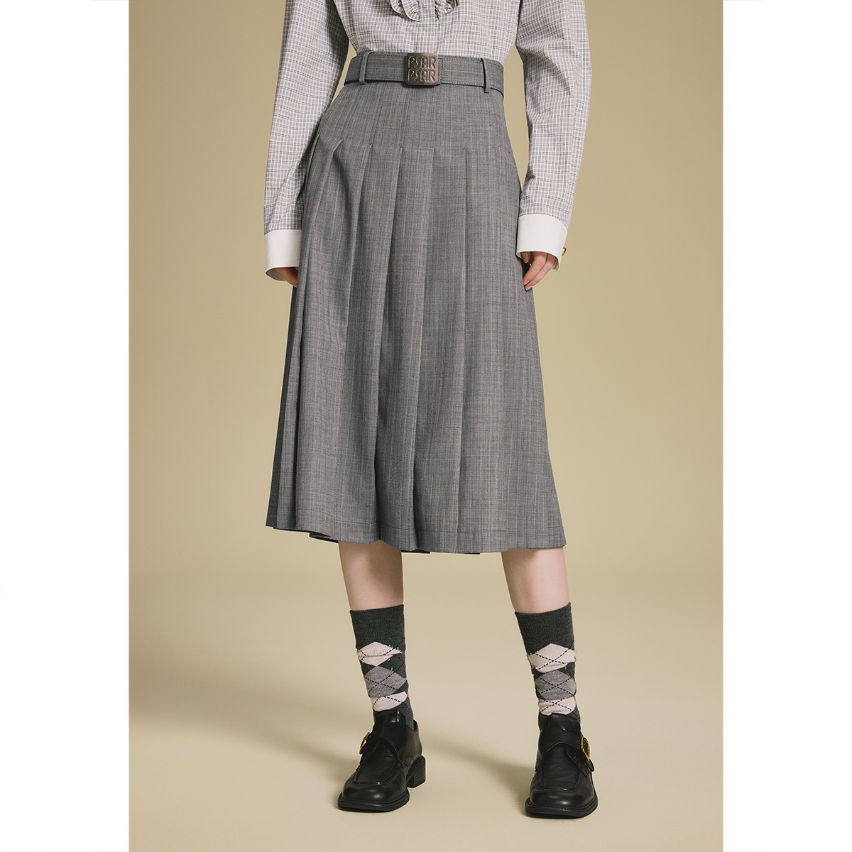 高腰梨型身材A字裙伞裙 半身裙百褶裙大码 胖mm显瘦百搭西装 中长款