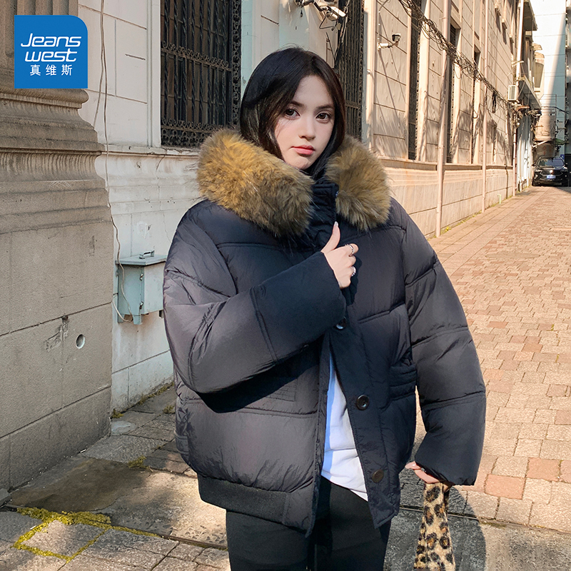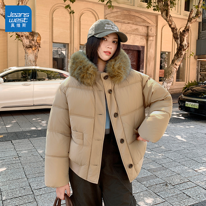五只白鹅2025秋冬男女加绒加厚保暖可拆卸衣领羊毛防风外套棉服