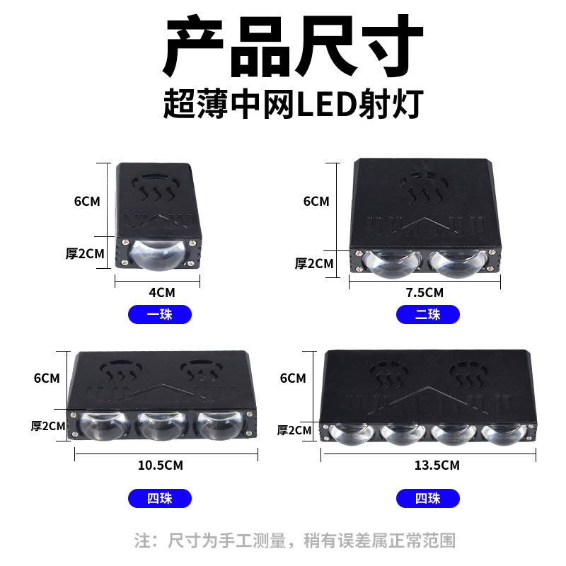 新款 超薄LED射灯12V汽车中网远光炮强光爆闪黄白远近光超亮易安装