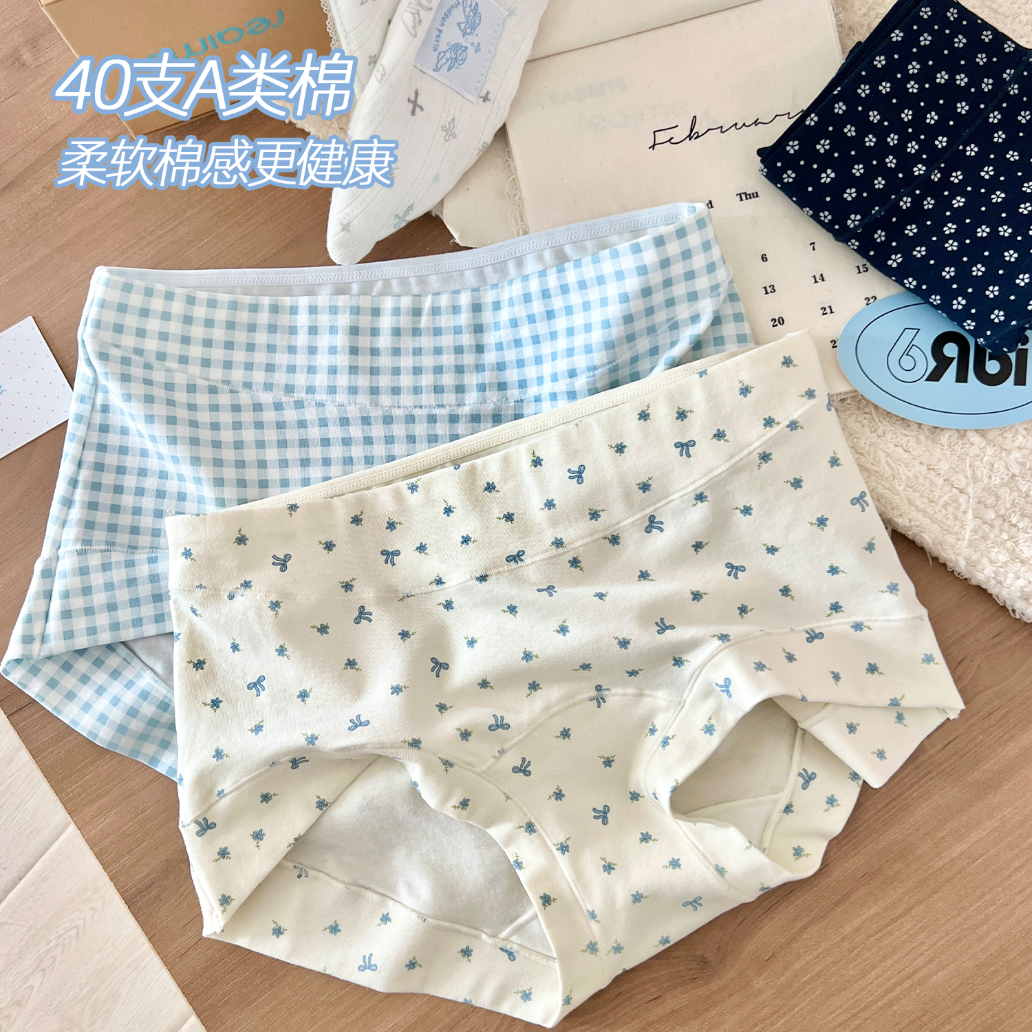 女士纯棉中腰女生内裤 不夹臀抗菌内裤 三角裤 新款 短裤 全棉时代内裤
