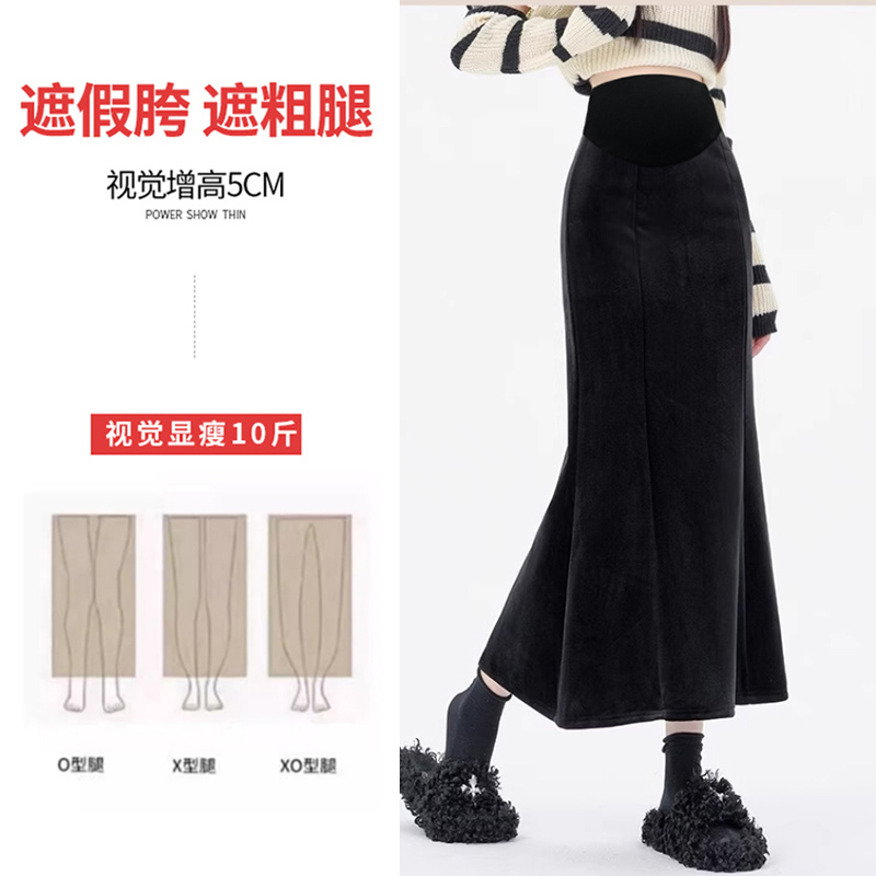 婧麒孕妇半身裙秋冬2025新款 女 丝绒鱼尾裙不显怀孕期鱼尾裙孕妇装