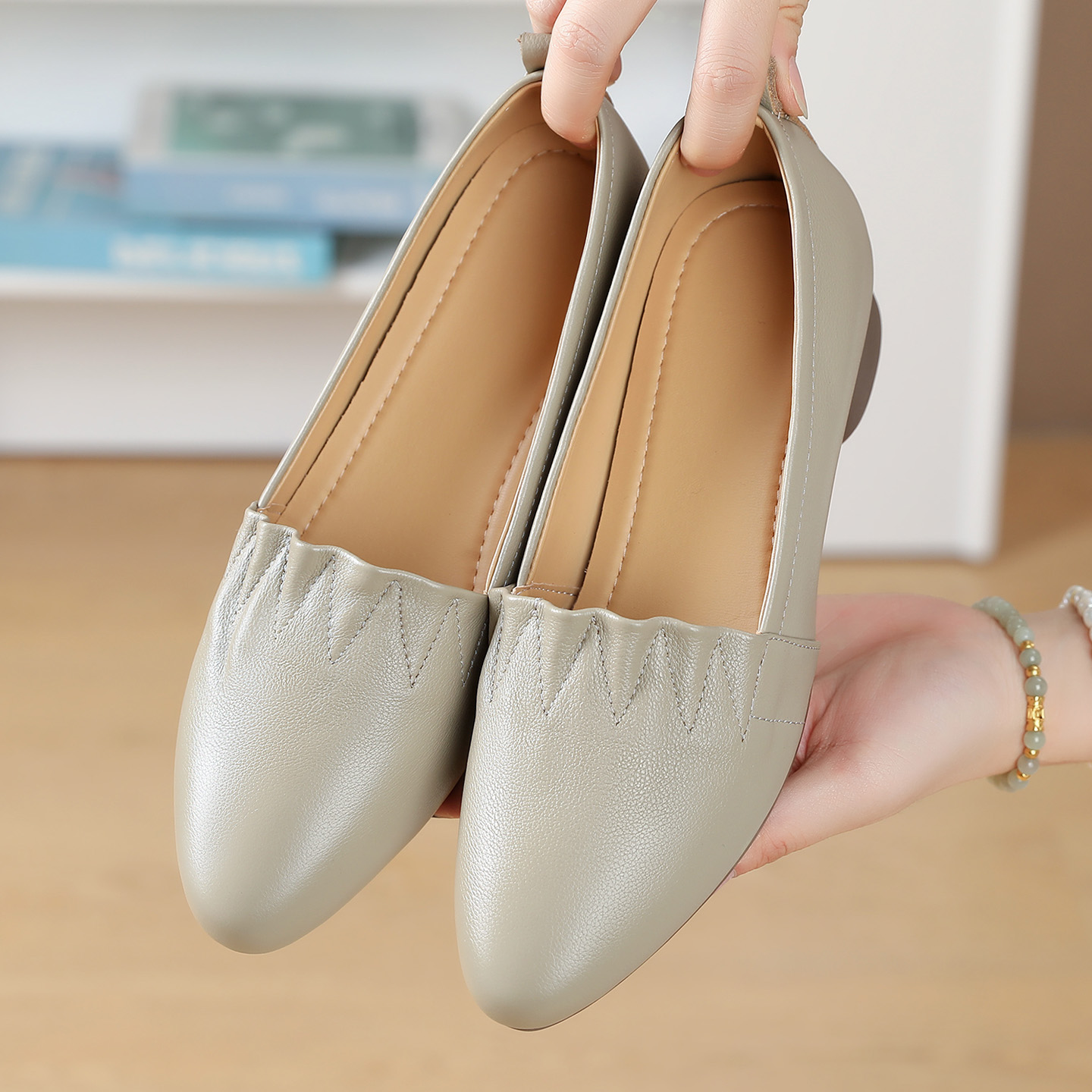 百搭浅口软底女士单鞋 春秋妈妈鞋 时尚 大码 真皮单鞋 女鞋 女2025新款