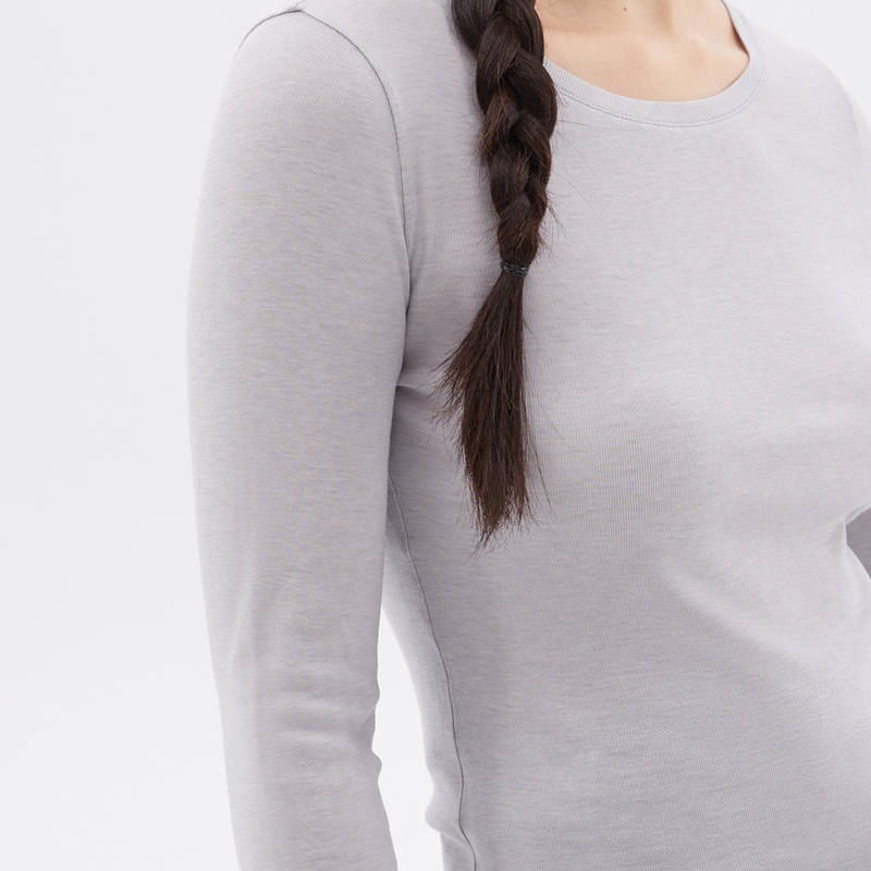女士丝罗纹针织布大圆领长袖 秋季 T恤 4M36 素然ZUCZUG