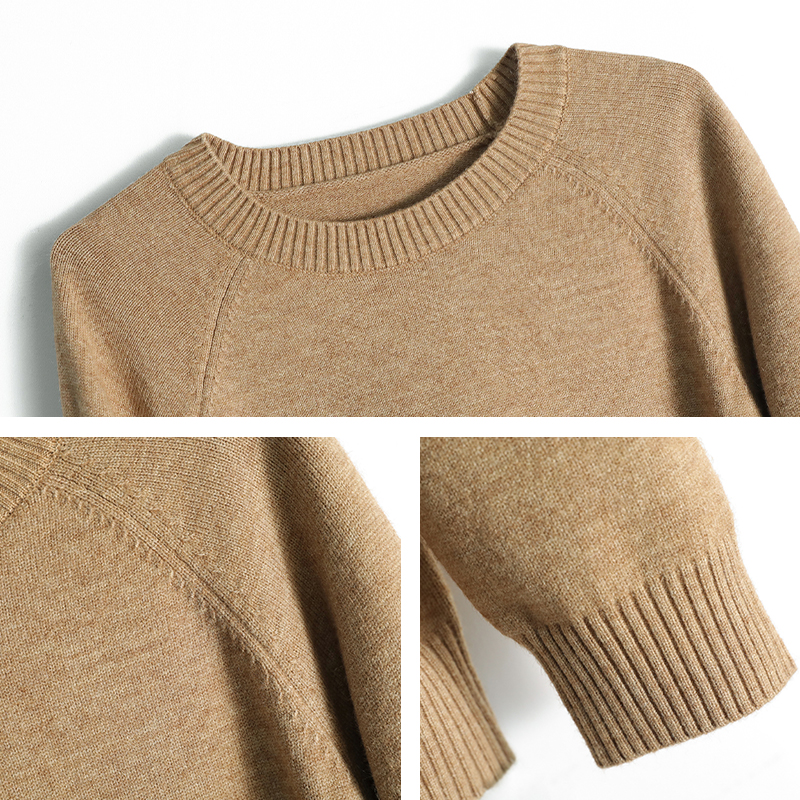 高级感上衣宽松打底针织衫 圆领100%纯山羊绒衫 女高端毛衣秋冬新款