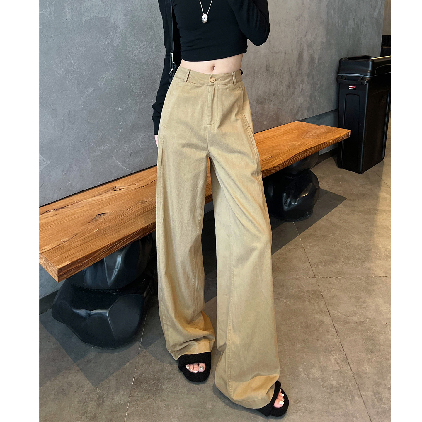 高腰显瘦天丝棉工装 新款 休闲裤 垂感西装 子 卡其色阔腿裤 裤 女春秋季