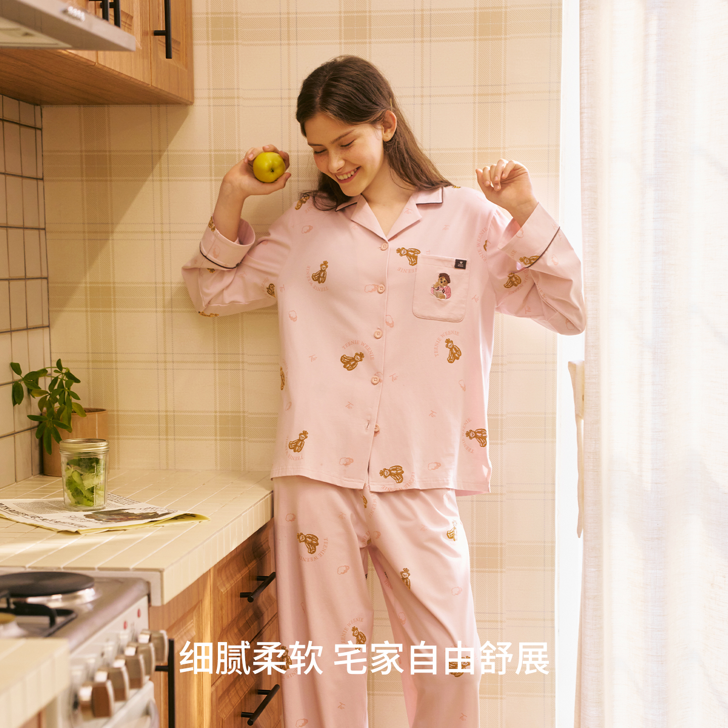 家居服 宽松纯棉印花长袖 TeenieWeenie小熊刺绣睡衣女2025新款 秋季