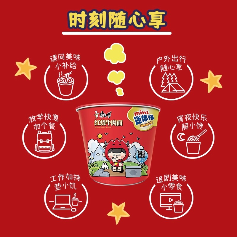 康师傅方便面mini迷你桶红烧香辣桶装 专享 速食夜宵食品 秒杀