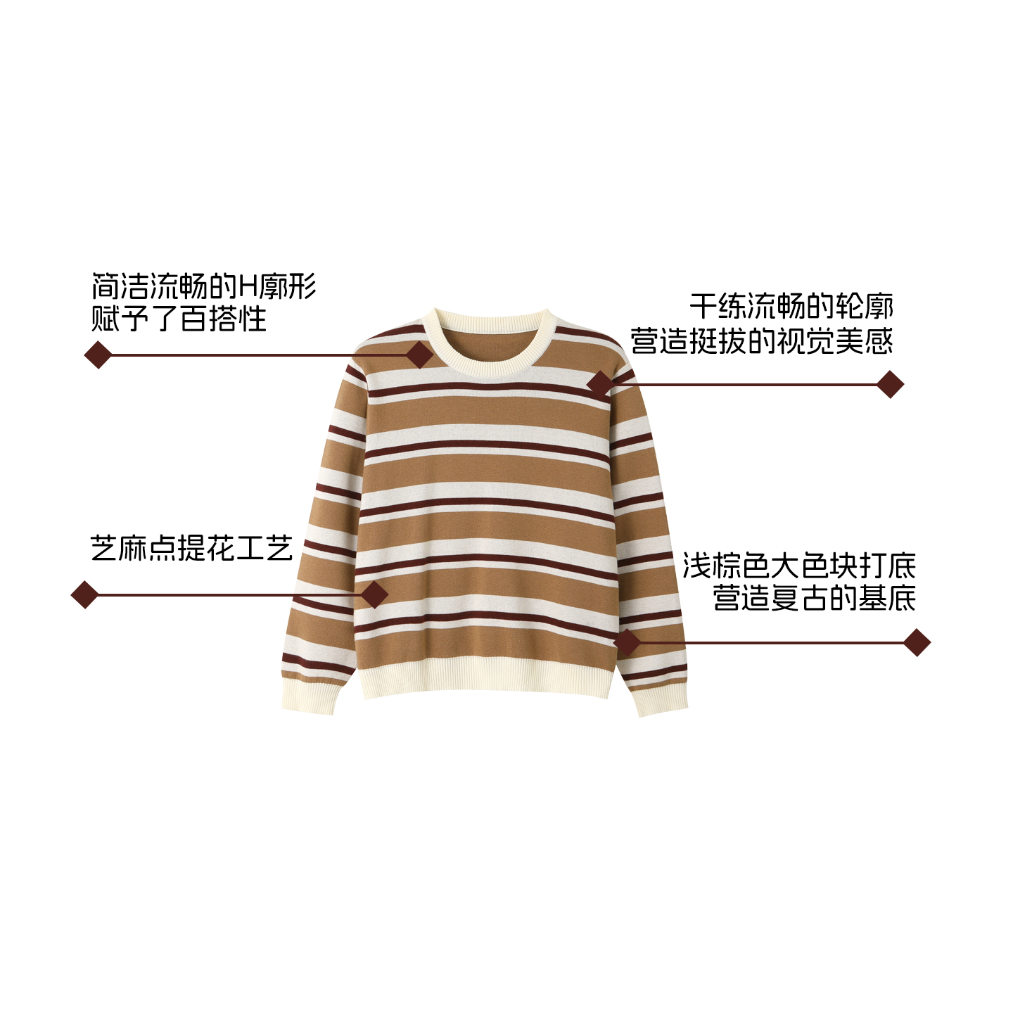 女复古条纹宽松软糯毛衣 bbfer本依凡WTSZZ0018秋针织衫 拿铁千层