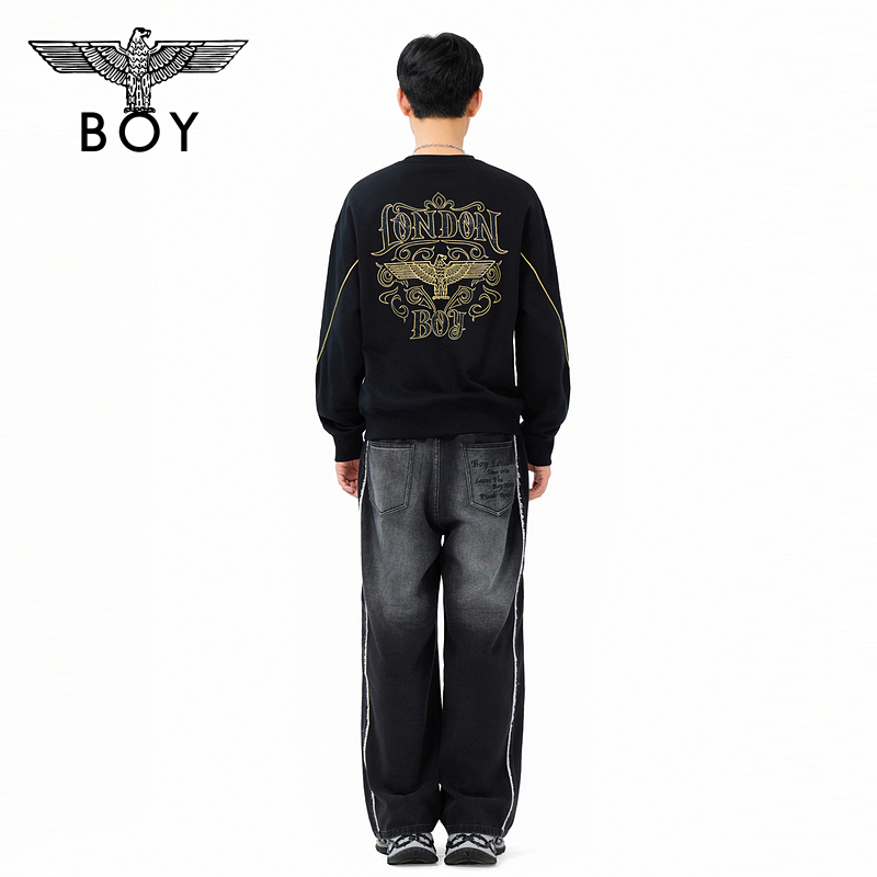 BM灰色圆领卫衣男款 运动套装 秋季 弯刀裤 宽松套头上衣 BODYDREAM