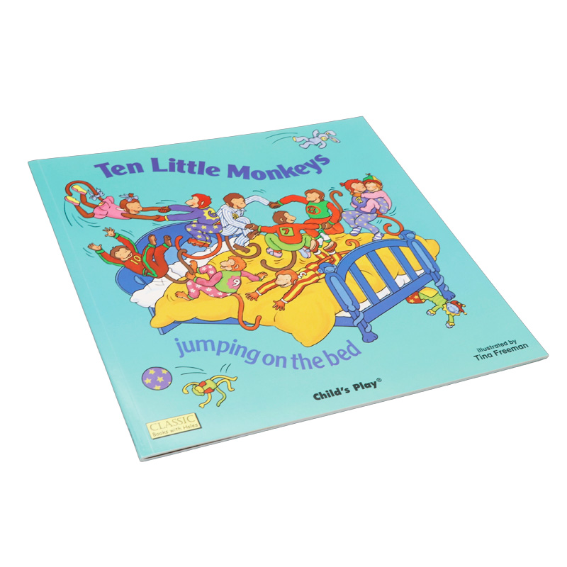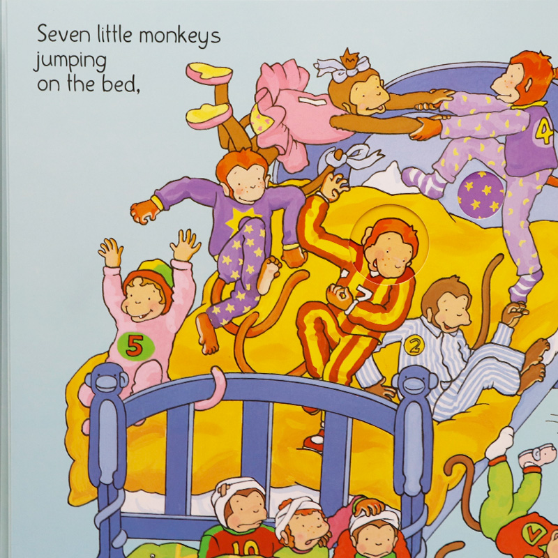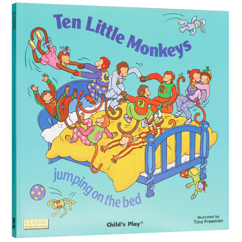 the Play 英文原版 十只猴子在床上蹦蹦跳跳 Child Ten bed jumping 韵文歌谣洞洞书二辑带CD版 Monkeys Little 儿歌 经典 绘本