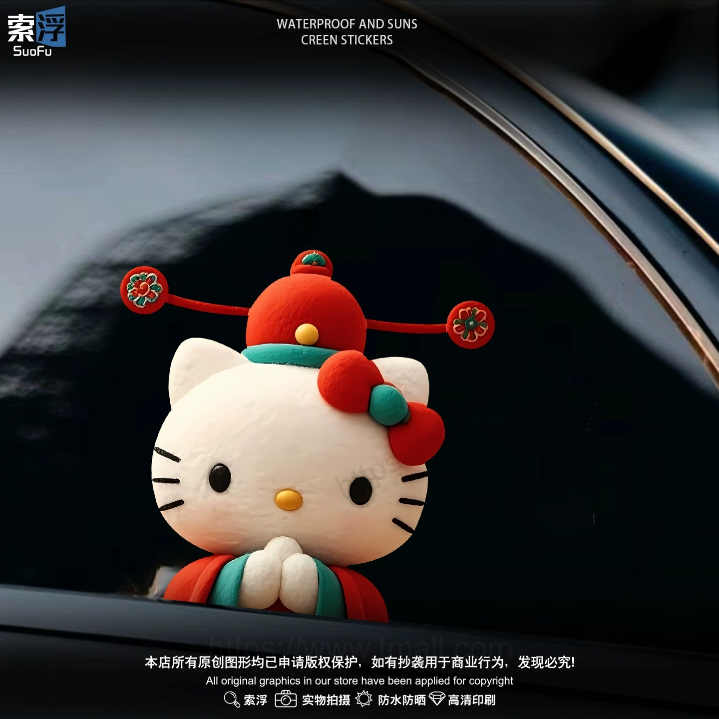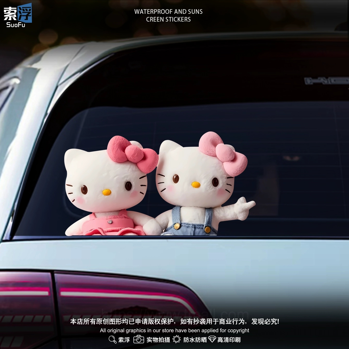HelloKitty凯蒂猫汽车车身遮挡划痕贴卡通可爱电动车防水装 饰贴画