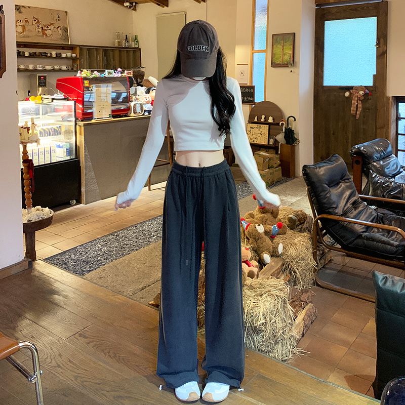小个子休闲阔腿裤 高腰直筒秋冬加绒卫裤 女春秋2025新款 灰色运动裤