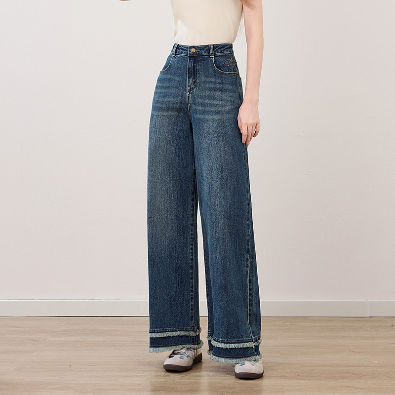 凉感水洗阔腿裤 女吸湿排汗2025夏新款 森马牛仔裤 森柔牛仔商场同款
