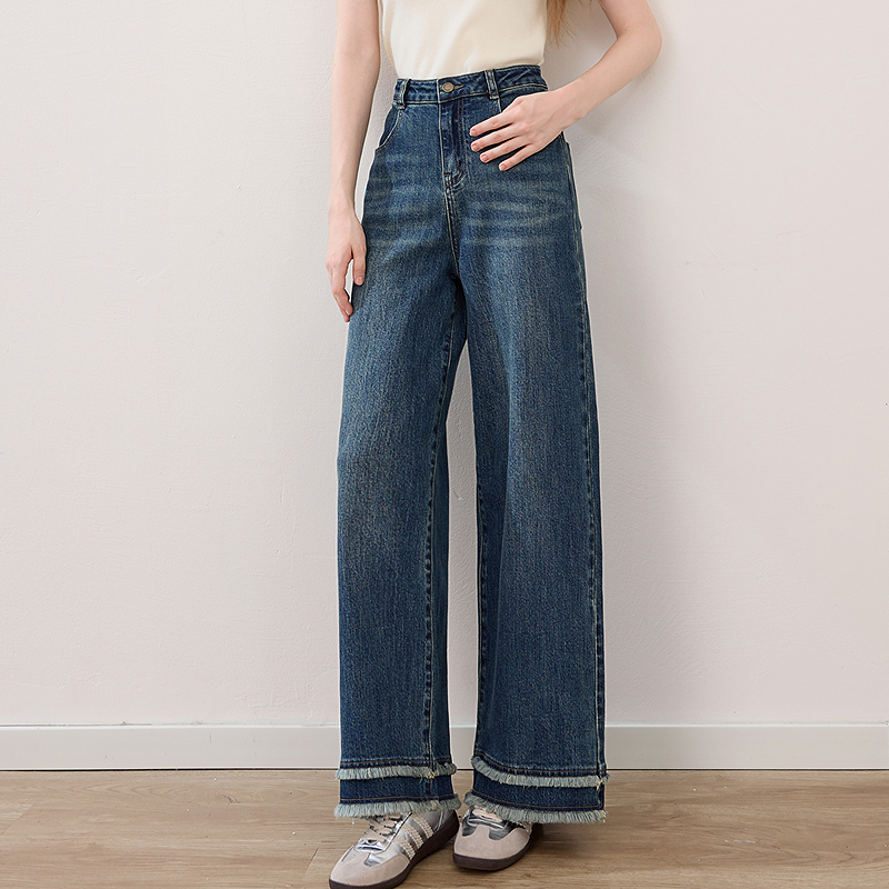 宽松复古金属扣百搭裤 LYNEE 女2025新款 高腰阔腿牛仔裤 子 星轨