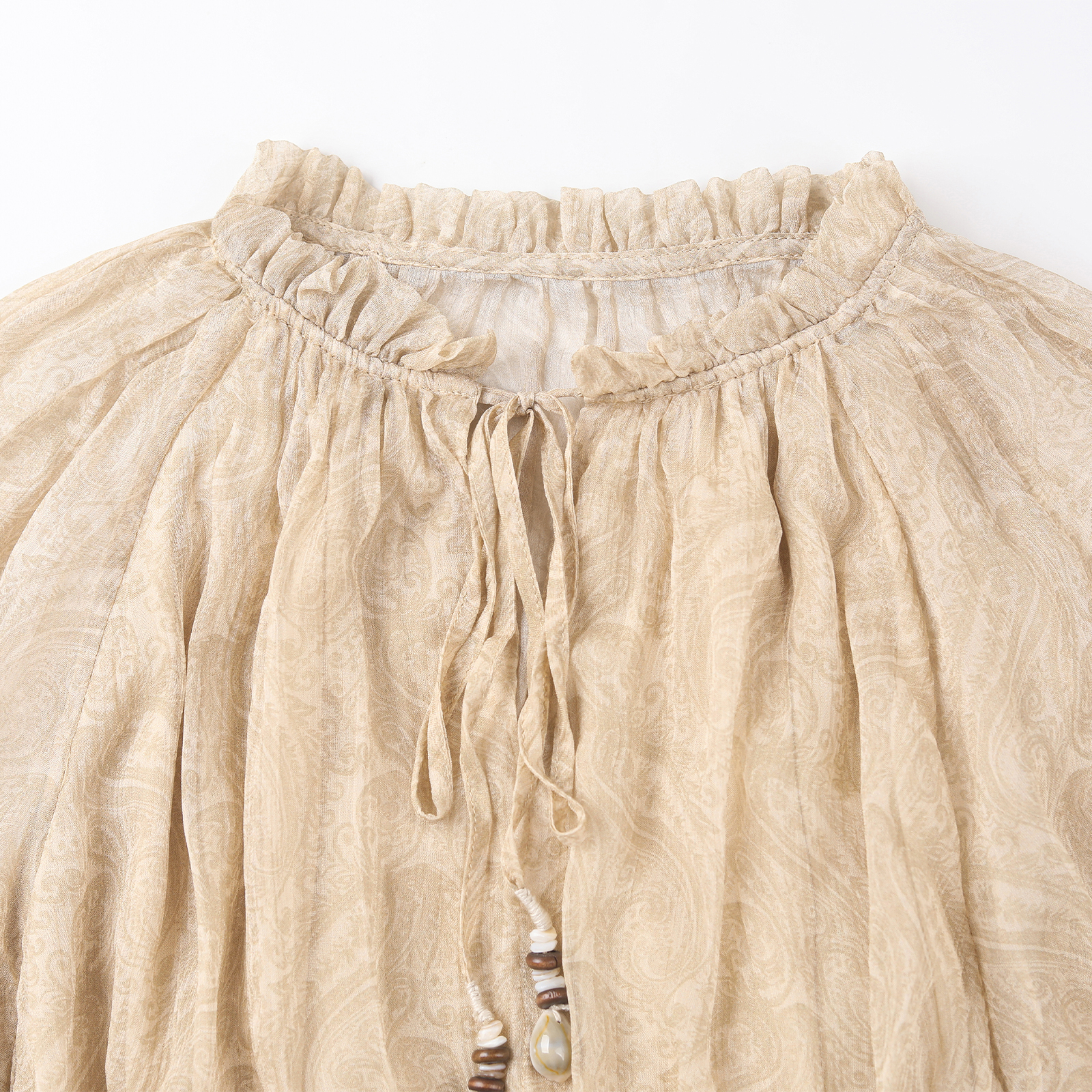 杏色气质百搭休闲上衣女 2025早秋新品 wana try人丝佩斯利花纹衬衫