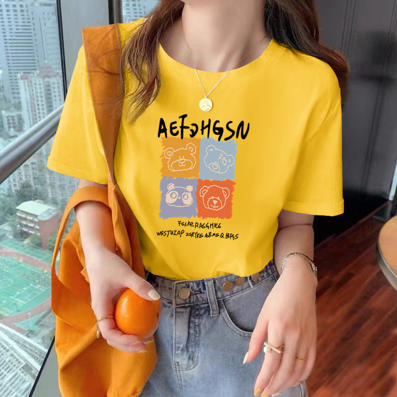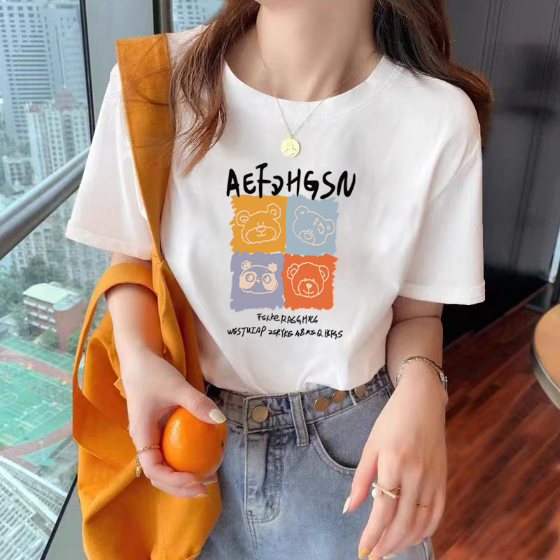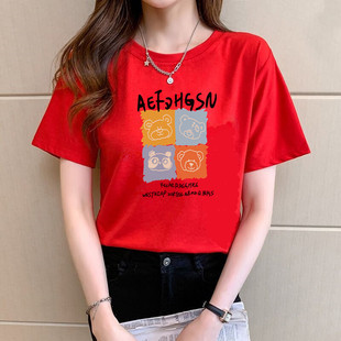 新款 大码 韩版 上衣宽松白色t恤女半袖 正肩 纯棉短袖 冰瓷棉2025夏季
