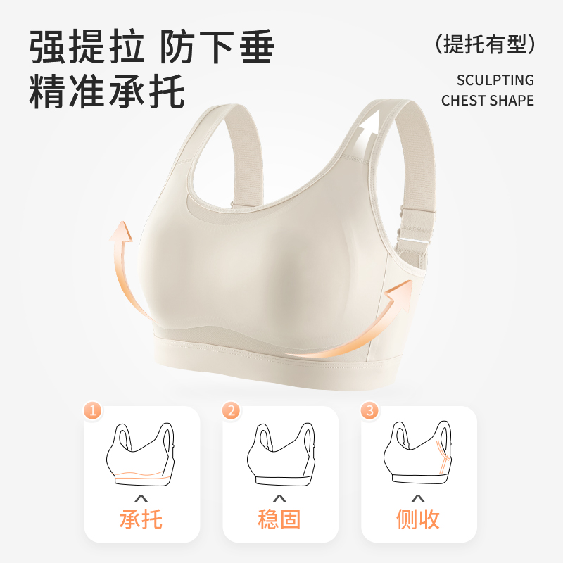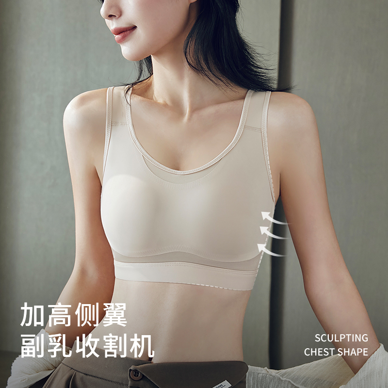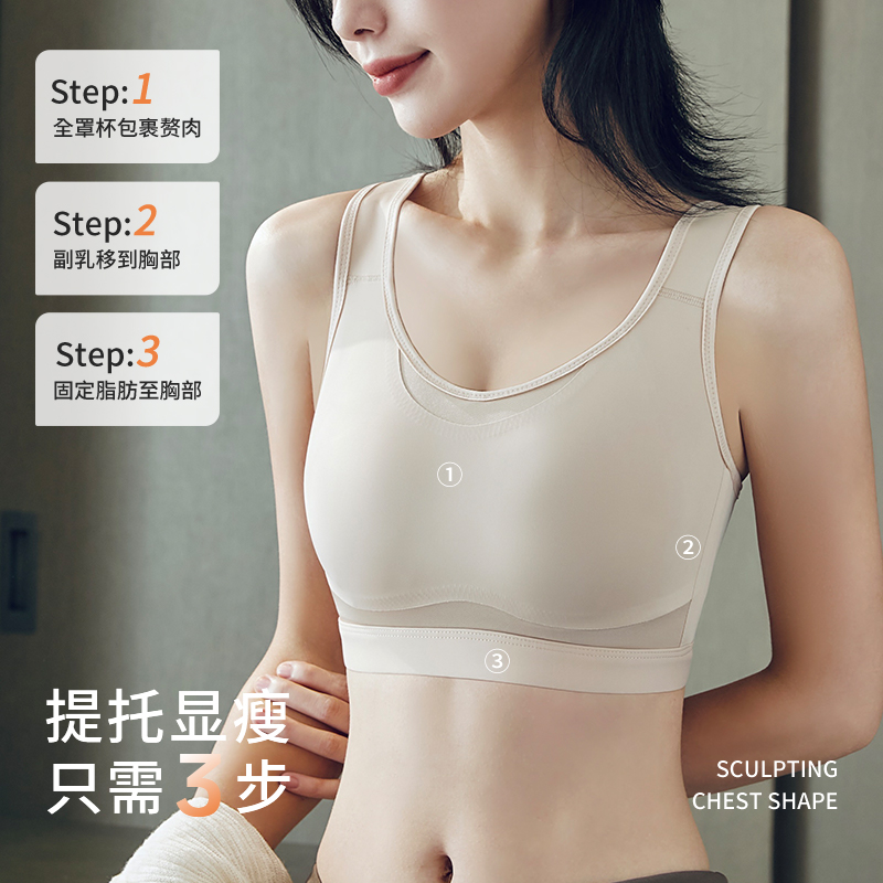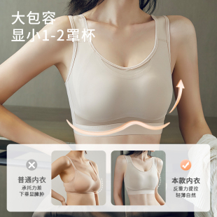 安娜蜜语大胸显小调整型内衣聚拢收副乳防下垂文胸大码 无钢圈胸罩