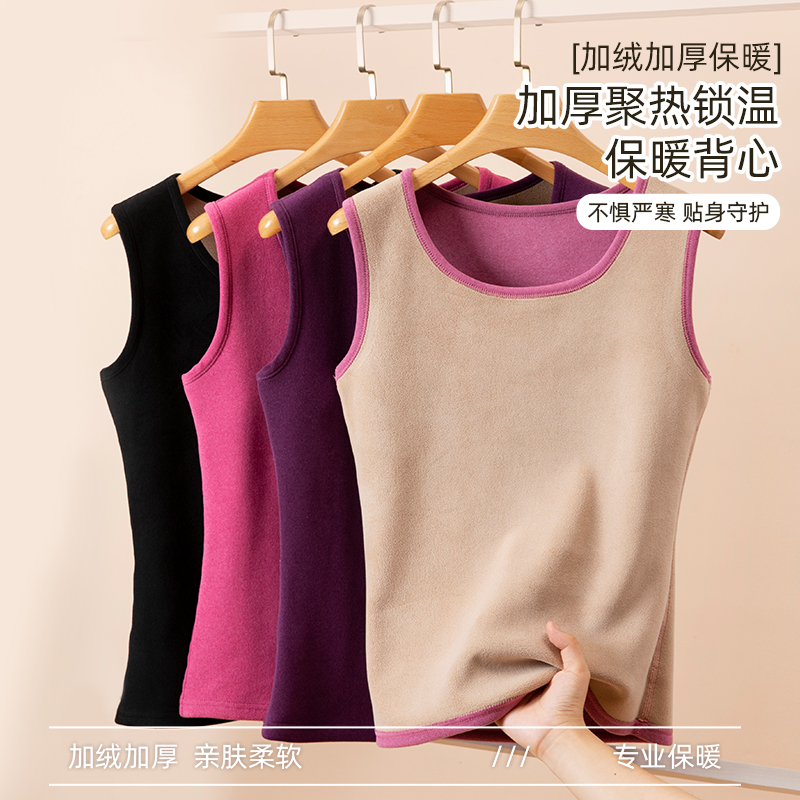 雅鹿保暖背心女士加绒加厚秋冬季 羊羔绒发热内穿打底防寒马甲 新款
