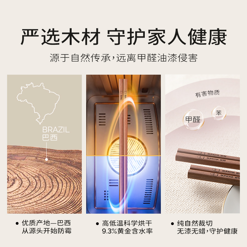 炊大皇木筷子家用2025新款 高档抗菌防霉防滑木质快筷子油炸耐高温