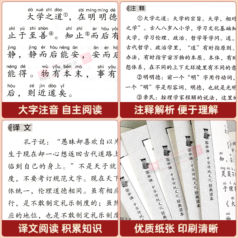 国学诵经典 正版 读本原著注释全集论语一年级二三年级课外阅读书籍必读传统文化启蒙道德经弟子规诵读三字经 小学生版 大学中庸注音版