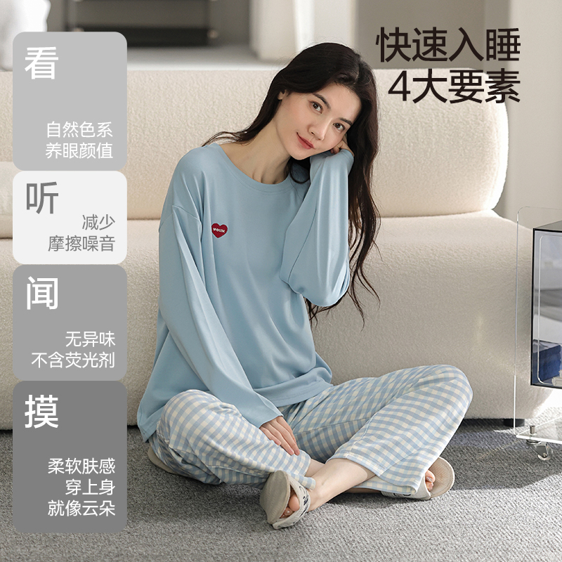 女士家居服套装 猫人纯棉睡衣女款 全棉四季 休闲长袖 春秋可外穿大码