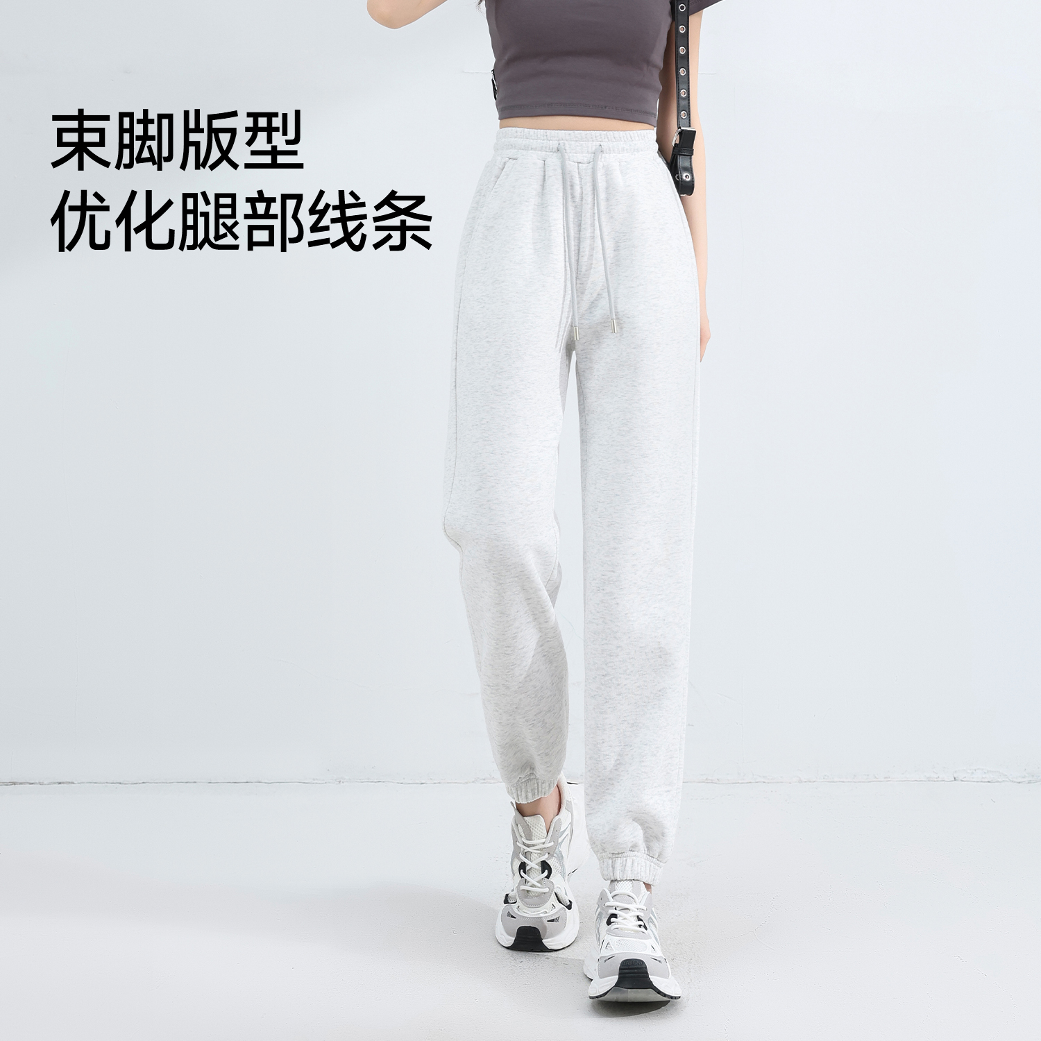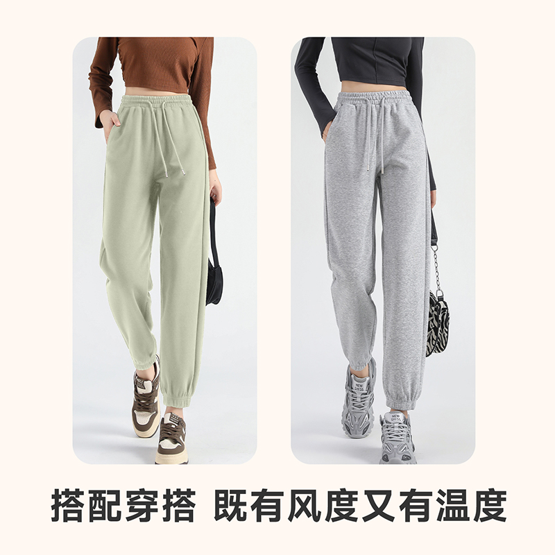 加绒街舞穿搭褶皱宽松休闲长裤 女秋冬季 子 灰色运动卫裤 自然涩美式