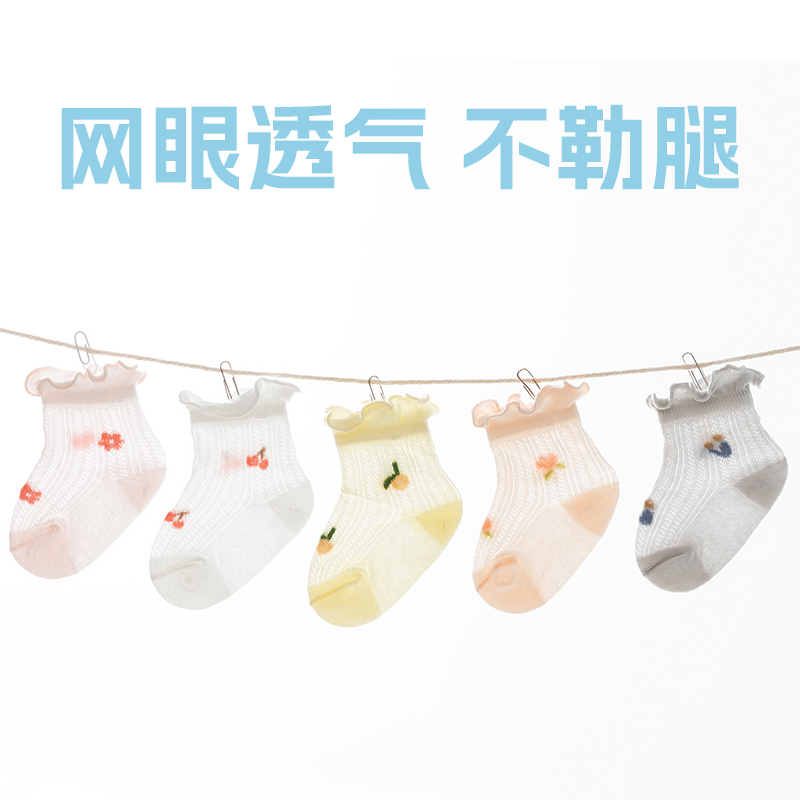 宝宝袜子女夏季 透气棉袜儿童网眼弹力花边袜松口春夏婴儿短袜 薄款