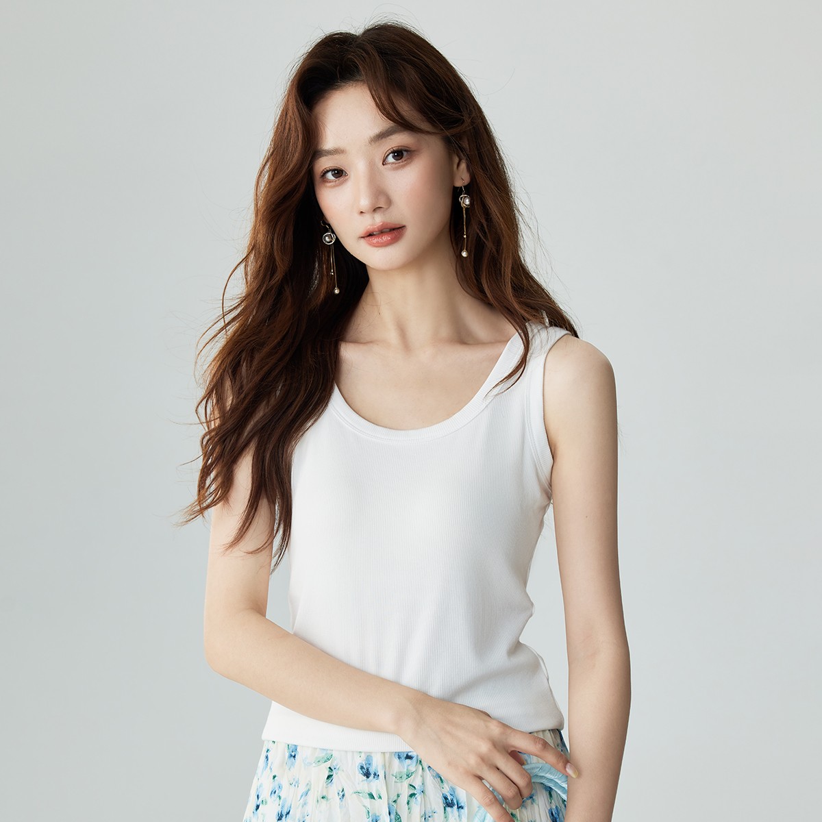 茵曼2025年春夏女装 带胸垫背心女简约纯色显瘦清凉吊带背心 无袖