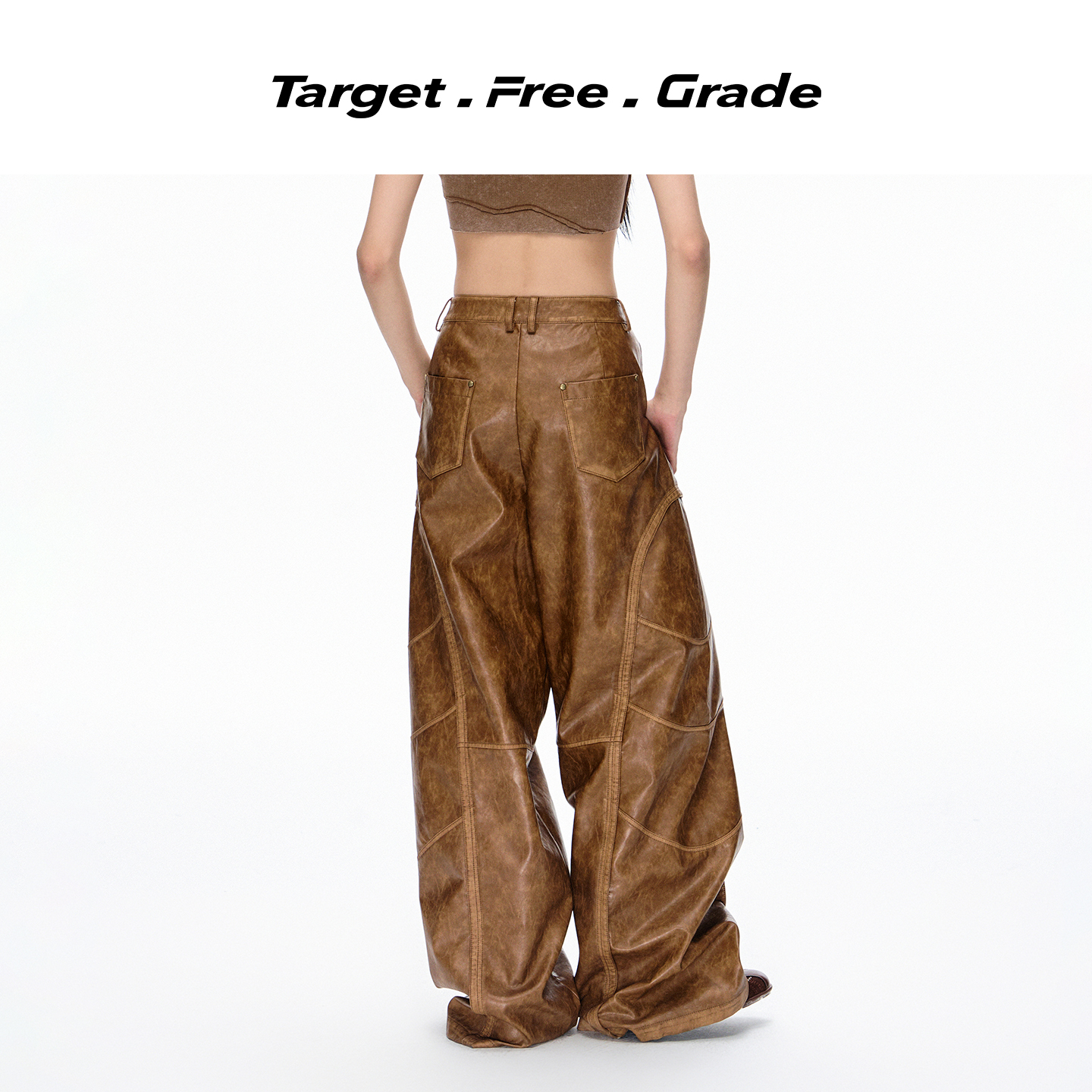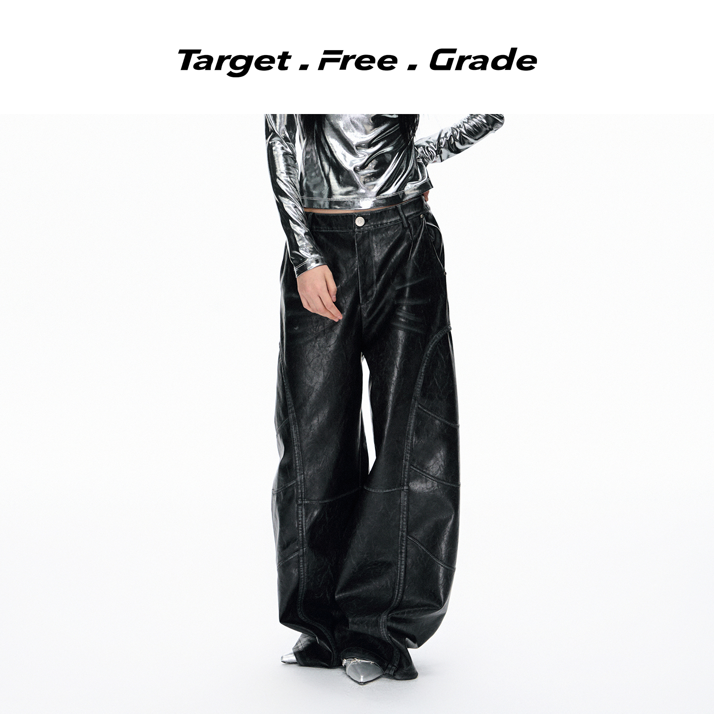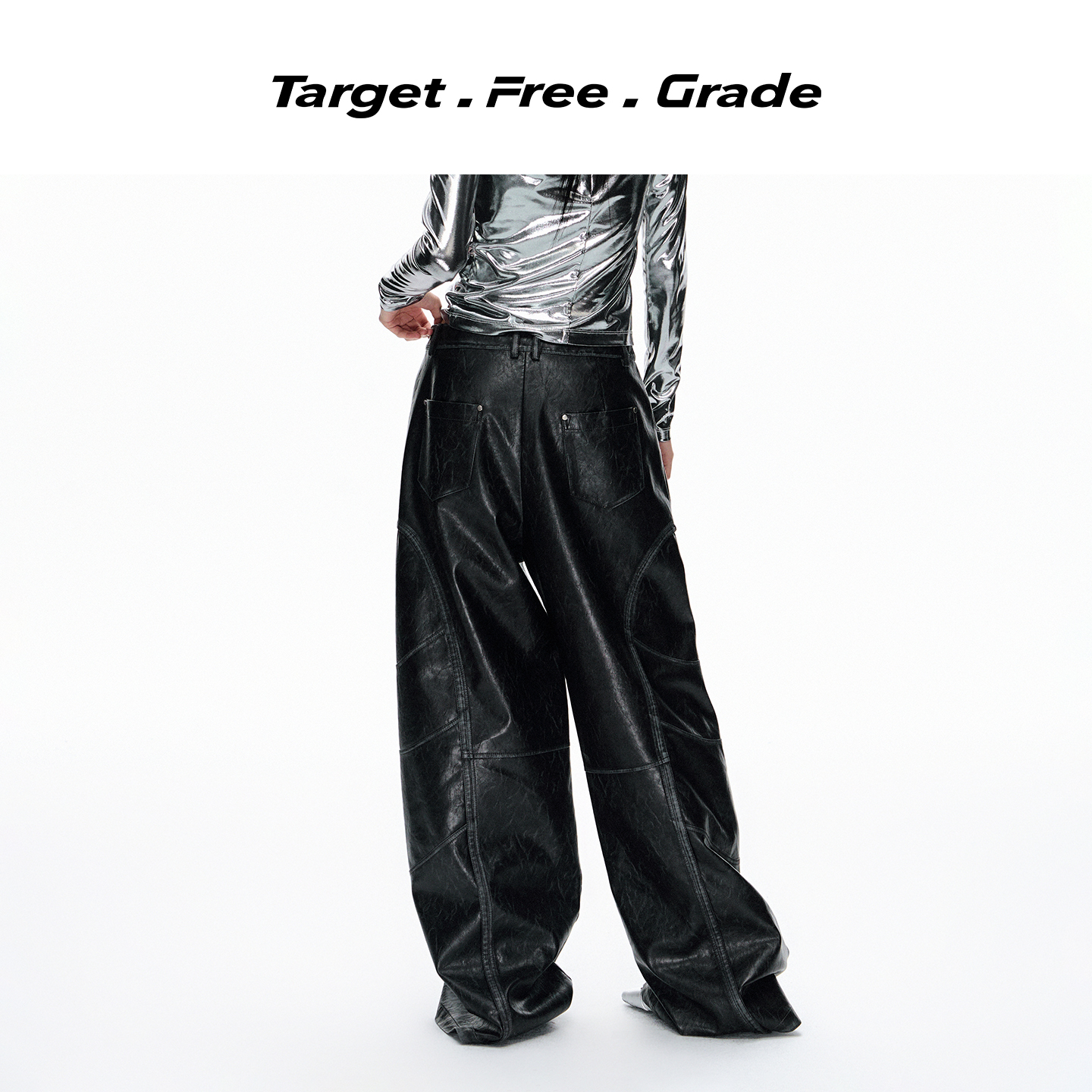 阔腿裤 TFG男女士2025春秋款 宽松设计感情侣pu皮裤 吴宣仪同款