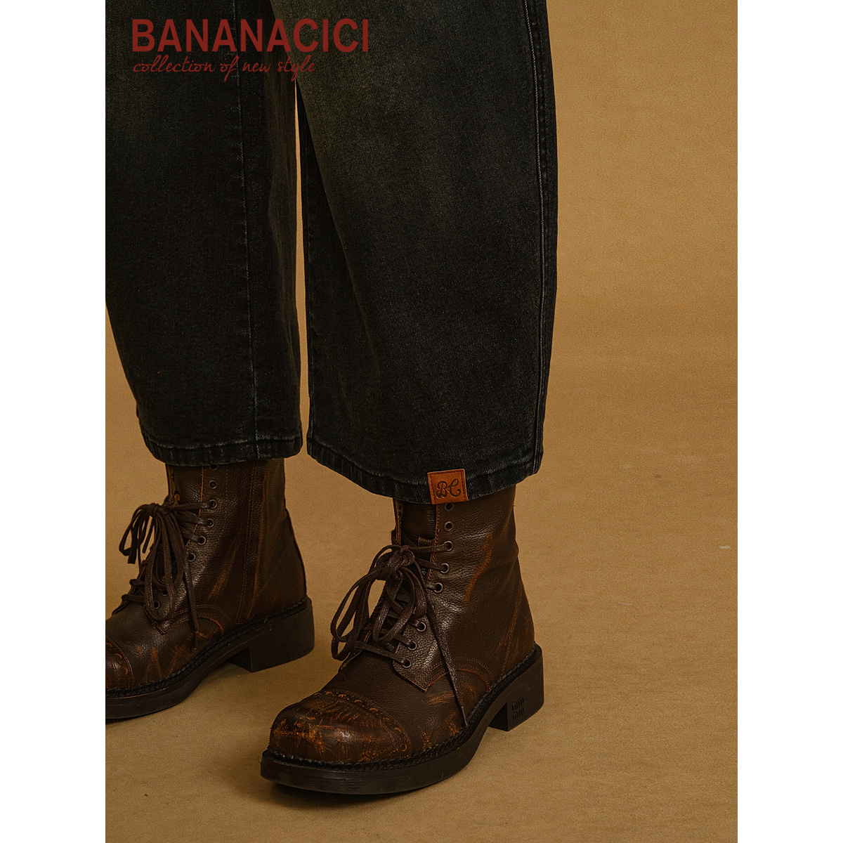 半松紧腰舒适百搭做旧破缝弯刀牛仔裤 新款 CICI2025年秋季 BANANA