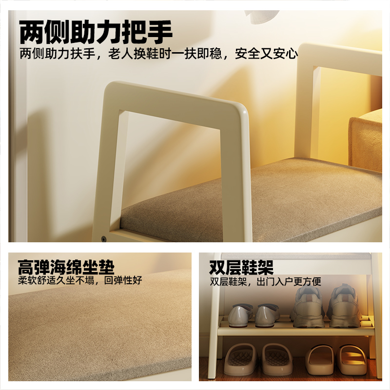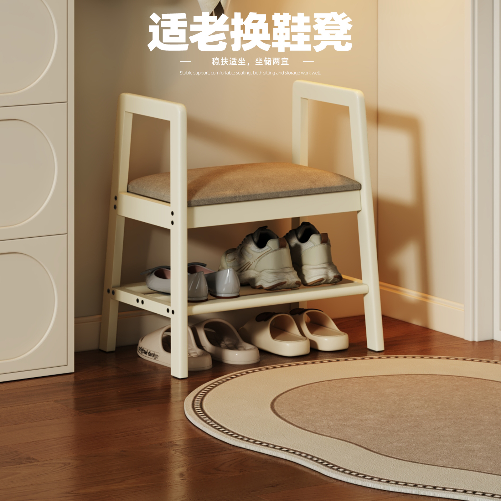 带扶手换鞋 凳实木进门可坐软包坐垫入户玄关凳 凳老人家用门口穿鞋