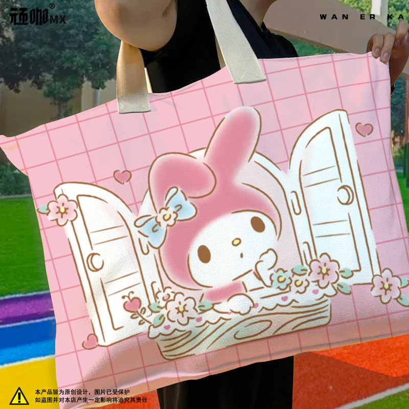三丽鸥美乐蒂窗户毛巾浴巾被褥包可爱卡通小学生妈妈包手提收纳袋