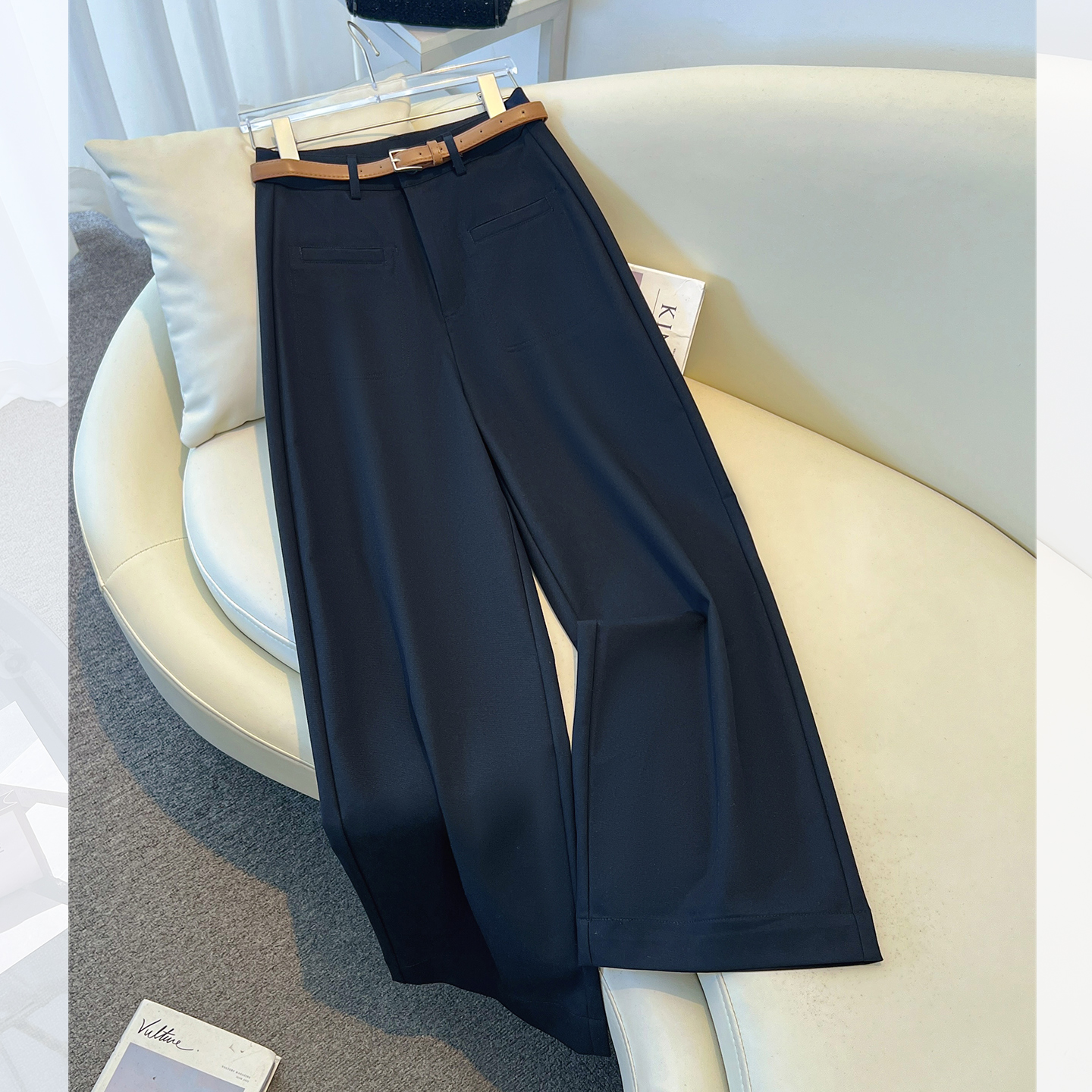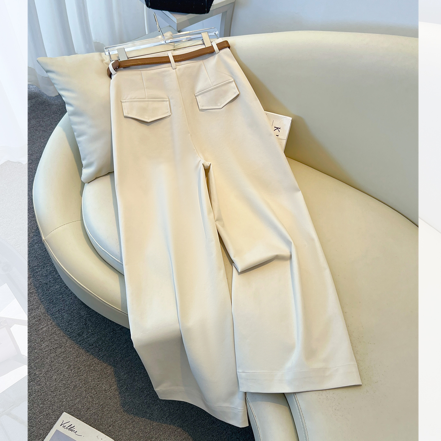 子女2025早秋季 裤 新款 爆款 超火 直筒阔腿裤 米白杏色高腰休闲西装