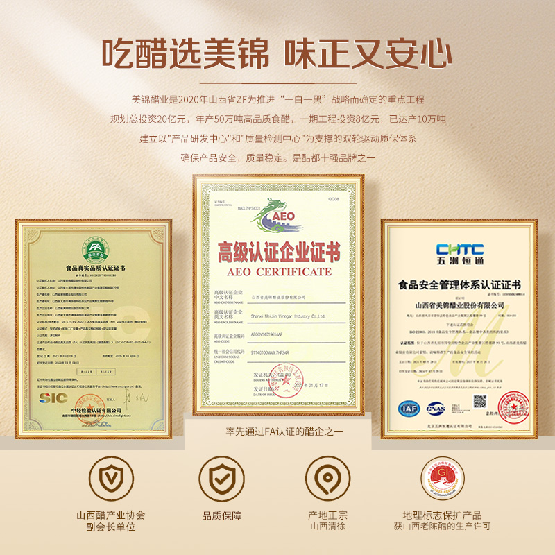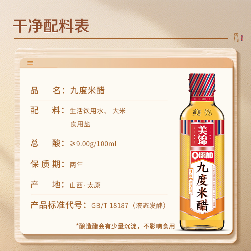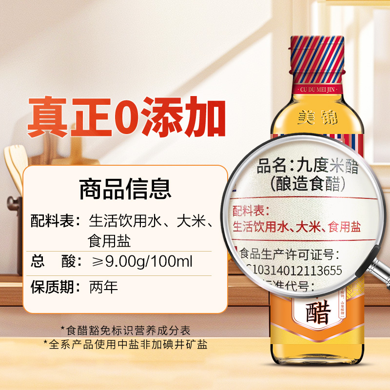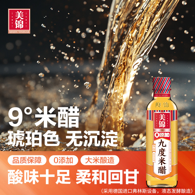 美锦零添加9度米醋500mL玻璃瓶装 酿造米醋泡蛋醋炒菜凉拌厨房家用